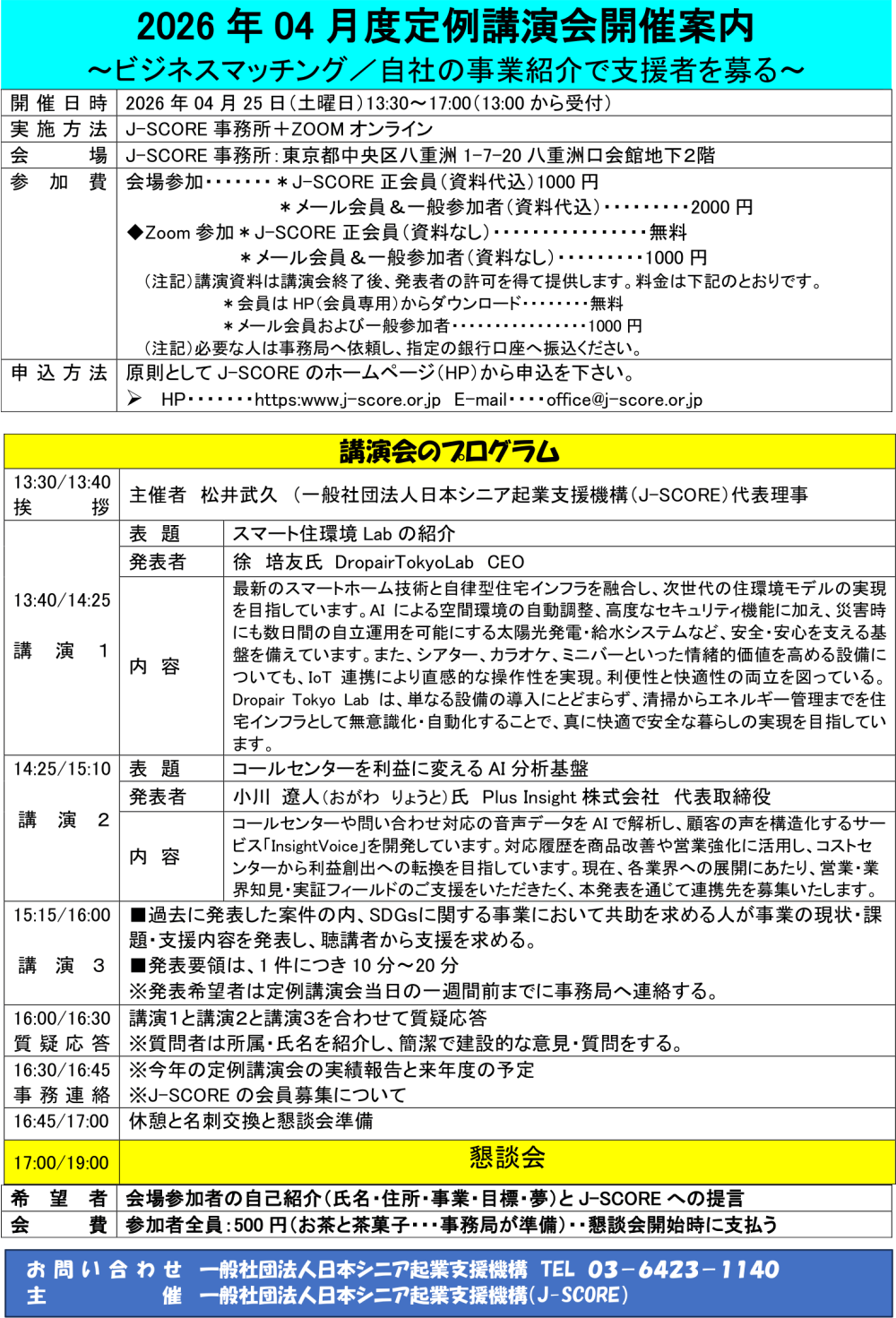 次回5月度「J-SCORE定例講演会」は、5月23日(土)になります。